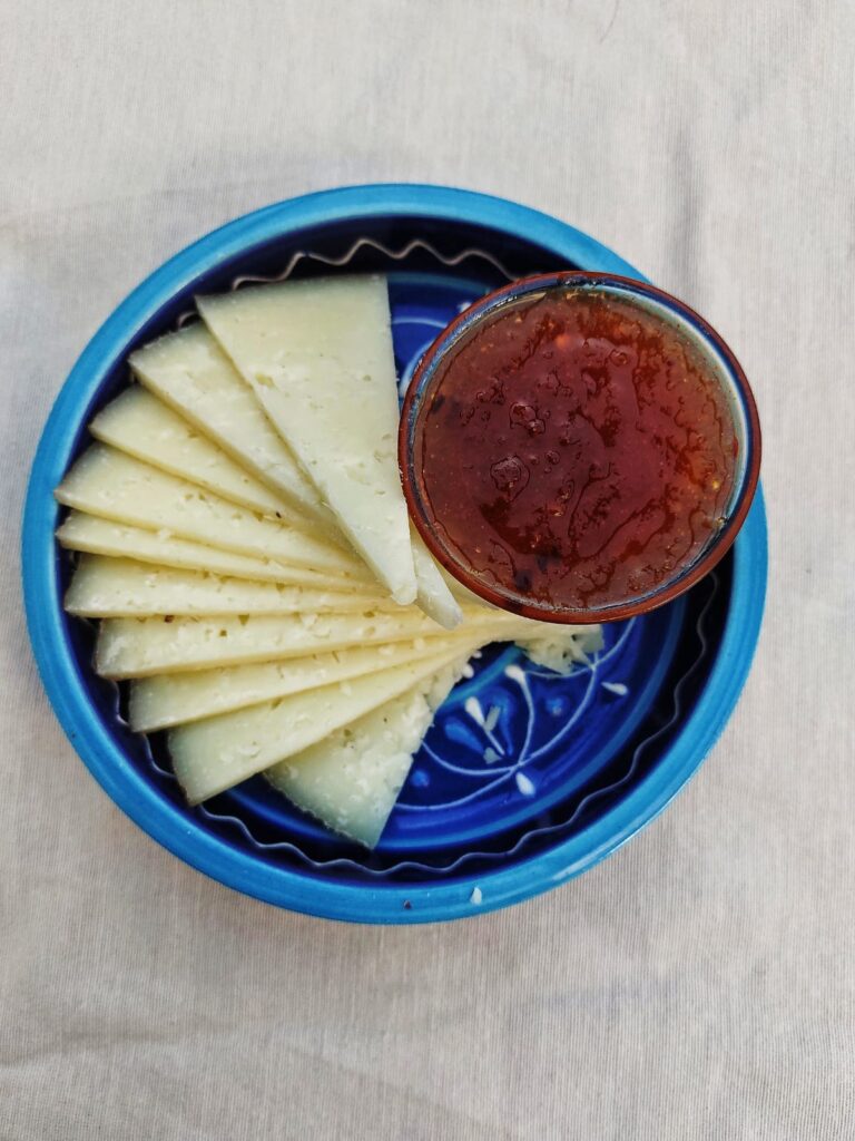 De Manchego kaas, het pareltje van Spanje. Deze kaas heeft een licht, pittige smaak met zout en nootachtig karakter wat samengaat met de robuuste en fruitige tonen van een Rioja. De Rioja wijn komt oorspronkelijk ook uit Spanje en is daarom een klassieke combinatie. De Manchego is afkomstig van schapenmelk. Het is romig, zacht, maar kan ook hard en scherp zijn, afhankelijk van de rijpingsduur. De Rioja is een volle rode wijn met hoge tannine structuur en brengt kruidige toon en fruitige smaken van donkere bessen, kersen en bramen wat zorgt voor contrast bij de zoutigheid en pittigheid van de kaas. De tannines geven stevige tegenhanger van de zoutigheid en pittigheid van de kaas. Door al deze factoren wordt de intensiteit versterkt maar overlappen ze elkaar niet.